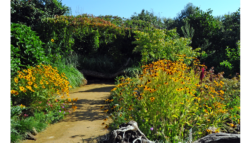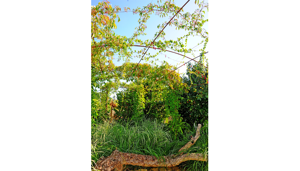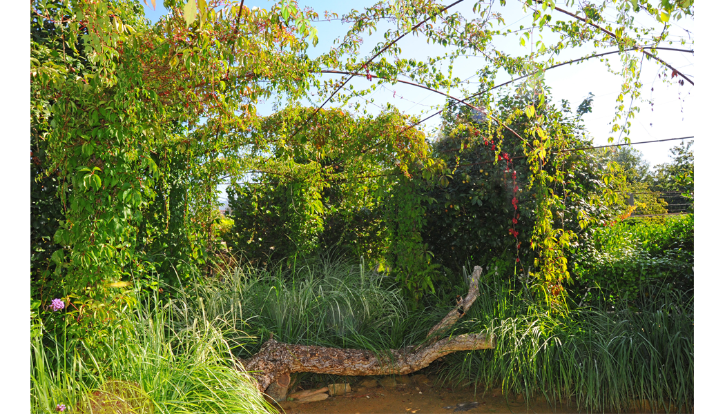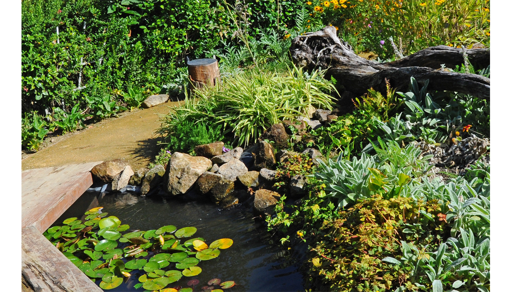 O jardim que imaginamos utiliza materiais simples e minimamente transformados, não inclui estruturas que possam sugerir que uma sociedade altamente desenvolvida modificou a paisagem.
