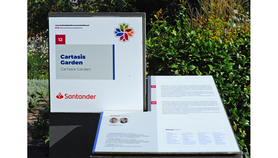 Cartasis Garden, um local que convida à serenidade e renovação interior, que integra a natureza e o bem-estar de uma forma única. Inspirado no conceito de “catarse”, o jardim foi concebido como um refúgio, onde se possa libertar a tensão existente e encontrar harmonia. Cada elemento transmite um propósito: os rochedos, cuidadosamente dispostos, simbolizam força e estabilidade, o que gera recantos perfeitos para a contemplação. Os percursos, em círculos de madeira, com a sua textura suave, convidam a uma exploração tranquila, enquanto as estruturas, também de madeira, proporcionam uma maior aproximação à natureza.