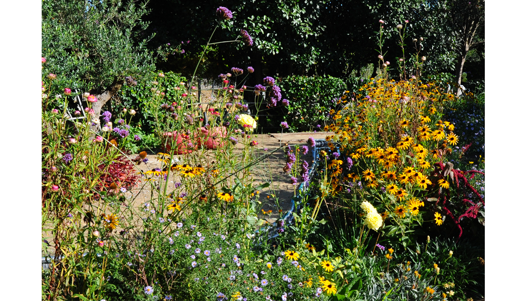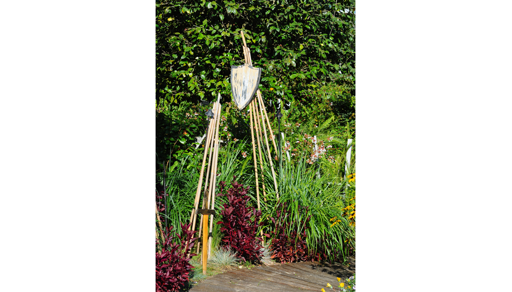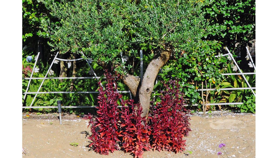 O foco central do jardim é a oliveira, símbolo da paz e da perseverança, rodeada de espinhos que representam o caminho difícil e doloroso para a paz. O jardim está dividido em quatro secções temáticas. A primeira secção representa a guerra, simbolizada por espinhos cheios de fragmentos de edifícios e munições partidos, complementados por flores vermelhas para homenagear os caídos. A segunda secção evoca uma inundação, com troncos em espinhos e areia do mar, nos quais florescem flores de Salvia farinacea, simbolizando a presença da água. A terceira secção reflete a pandemia, com máscaras faciais e escudos colocados em espinhos, evocando a crise global, enquanto a Gaura lindheimeri de flores brancas proporciona um forte contraste. A última secção representa o fogo, ilustrado com pedaços de madeira carbonizada sem flores, apenas com algumas ervas ornamentais, simbolizando a destruição.