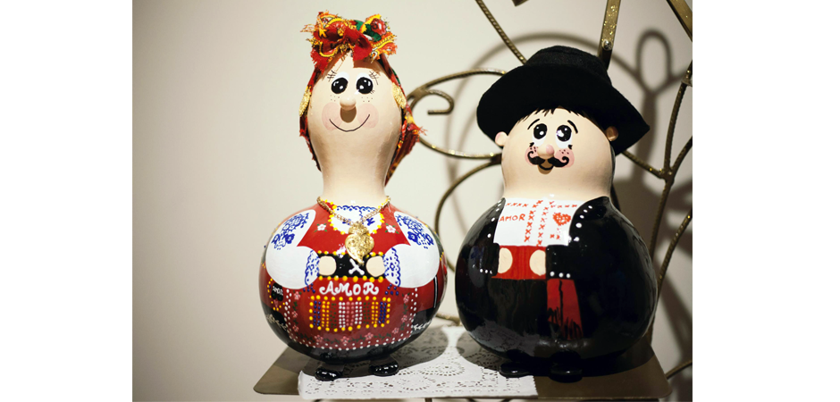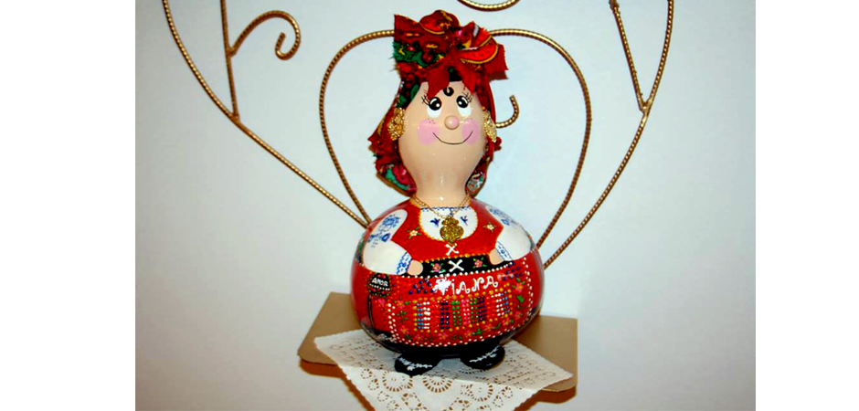 “Maria Kabaça é uma celebração da mulher minhota, também tecedeira, bordadeira e criadeira de roupas e filhos entre linhas e pontos (a bordar tecidos com flores e outros encantos decorativos, tão chegados aos que não podia comprar). Os bordados eram ainda um ofício e, com a paga recebida pelas manualidades tão aperfeiçoadas, apreçavam as raparigas enfeites de ouro e ampliavam ainda mais o deslumbramento. Dizem as bocas que a mulher minhota é vistosa e anda com chieira, num imaginário popular e também sensual da figura feminal. Assim, a cabaça, elemento de principalidade nestas peças artísticas, a lembrar tanto as curvaturas do corpo, são dedicadamente pintadas com inspiração na ousadia colorida e faustosa das raparigas do Minho”.